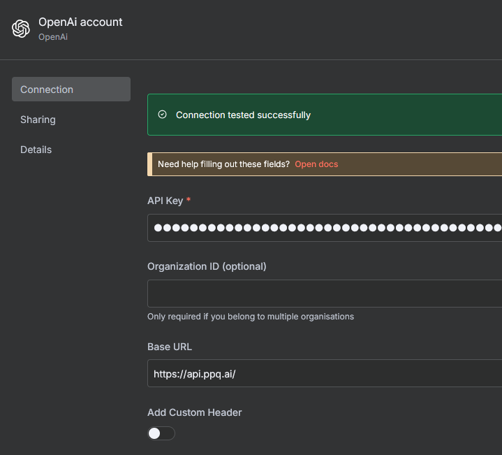 - Get API info from PPQ, using Get an Api Key from the ppq site